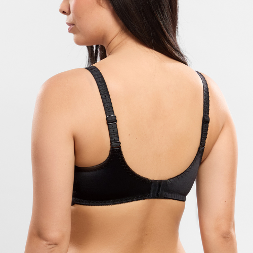 A full coverage bra with intricate and shimmery embroidery on the tulle cups and front band. The plunging neckline adds a level of glamour and charm. The accordion straps helps anchor the adjuster to the desired length for a comfortable wear throughout the day.